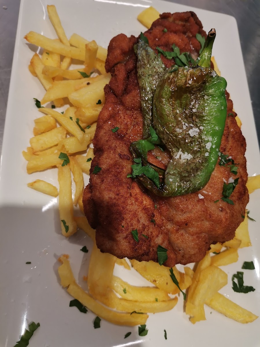Inside, the service tends to be friendly and efficient, which suits the steady flow of people dropping by for quick lunches or early dinners. The available menu showcases regional flavors with dishes like Paella tapas, Pulpo a la Brasa con Verduras, Berenjenas con Miel de Caña, and specialties such as Secreto Teriyaki and Cachopo de Ternera con Foie y Queso de Cabra. There’s a particular emphasis on Iberian pork cuts grilled to order, reflecting Andalusian culinary roots. For those who want a lighter option, salads and varied tapas offer a simple, familiar palate.